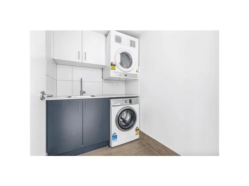 - Internal laundry including washing machine and dryer.