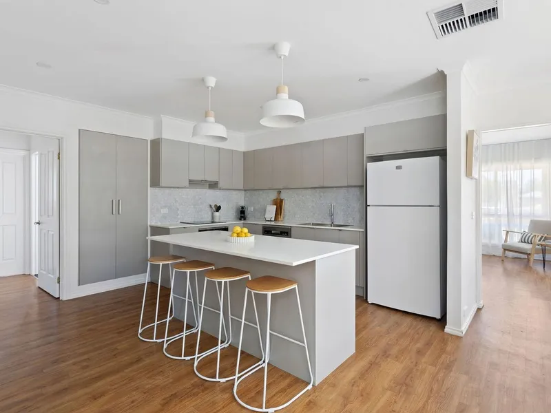 This neat 3-bedroom, 2-bathroom home showcases generous dimensions throughout, a full-width courtyard and a well-equipped kitchen. Enjoy a master bedroom with a walk-in robe and full ensuite; and a private, secure setting hidden from street view. The kitchen comprises generous storage, a ceramic cooktop, a stainless steel oven and an abundance of natural light.