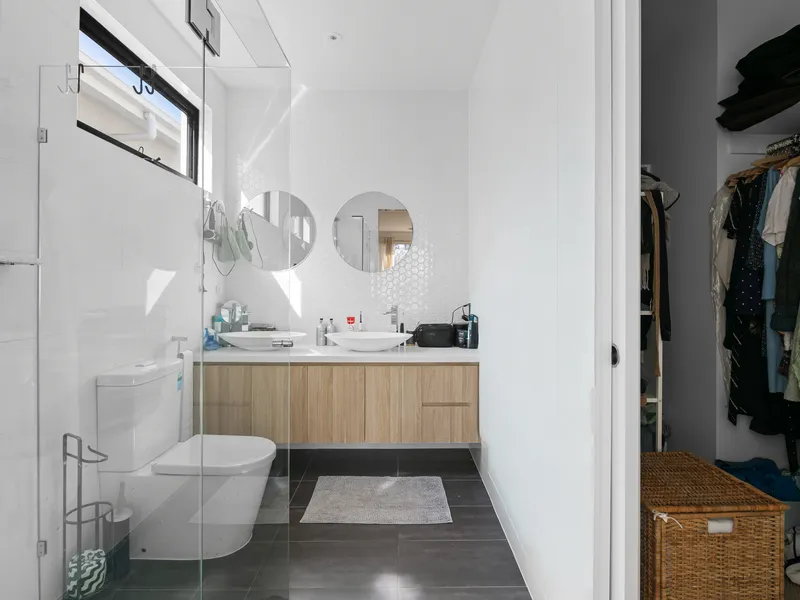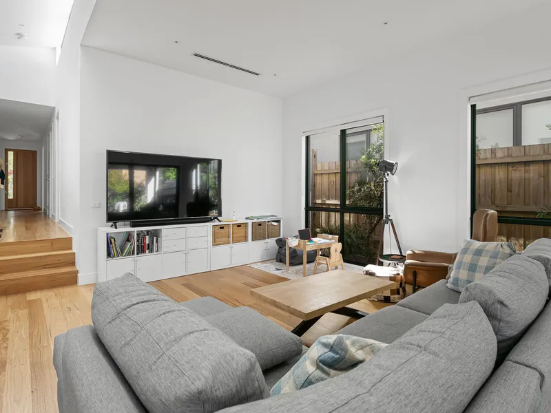 Only a few years old, the home showcases stunning timber floors, soaring high ceilings, and quality fittings and fixtures throughout. Designed with both style and functionality in mind, the spacious open-plan living and dining area flows seamlessly, creating a light-filled and welcoming space ideal for both everyday living and entertaining.