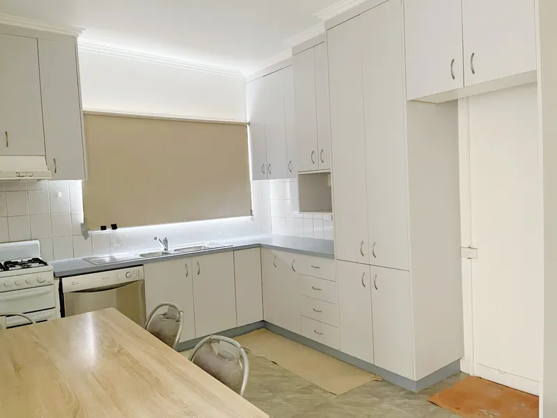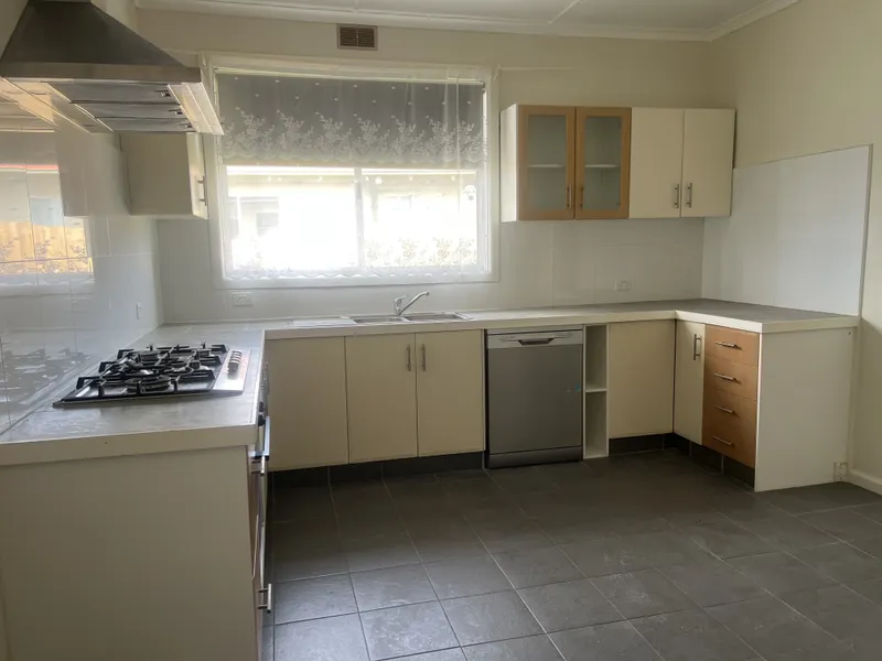 - Kitchen with plenty of storage, gas stove, electric oven & dishwasher