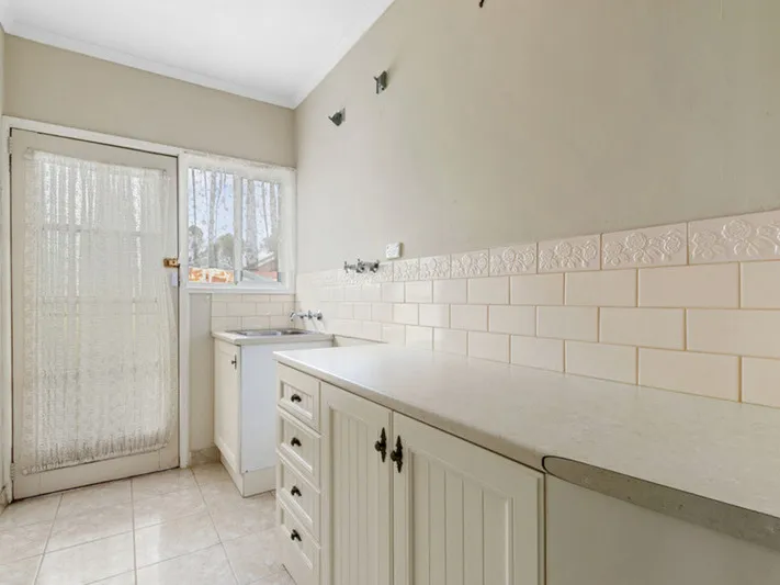 . Large size laundry with bench space & option for either a front or top loader washing machine.