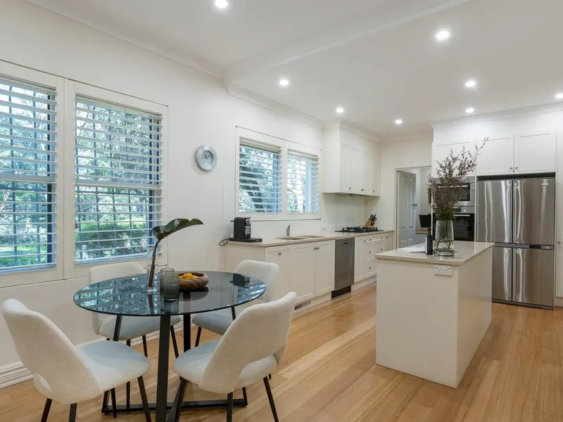 Generous interiors flow effortlessly to a series of sunlit outdoor areas designed for entertaining and relaxation. The home’s open layout, resort-style pool, and tranquil garden surrounds create a private retreat ideal for contemporary family living.