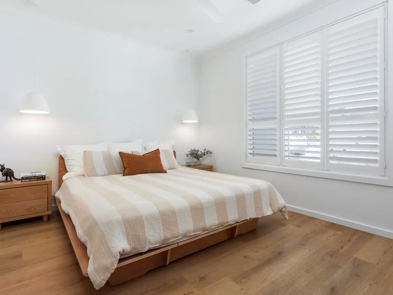 • Sleek honeycomb thermal blinds, complemented by shutters and sheers