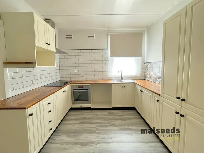 Upon entering the front door you'll step into a freshly painted, spacious living area with new flooring, slow combustion heating, air conditioning and ceiling fan. The open plan design flows through to a stylish and practical kitchen with plenty of cupboard space, timber benchtops and induction cooking, as well as room for a dining table.
