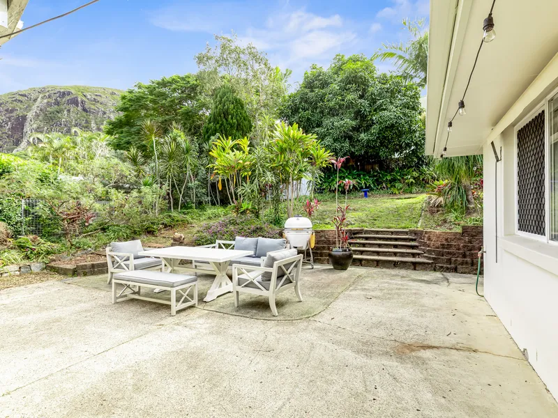 • Large fully fenced yard with Mount Coolum views, fire pit zone, and space for a veggie garden or trampoline