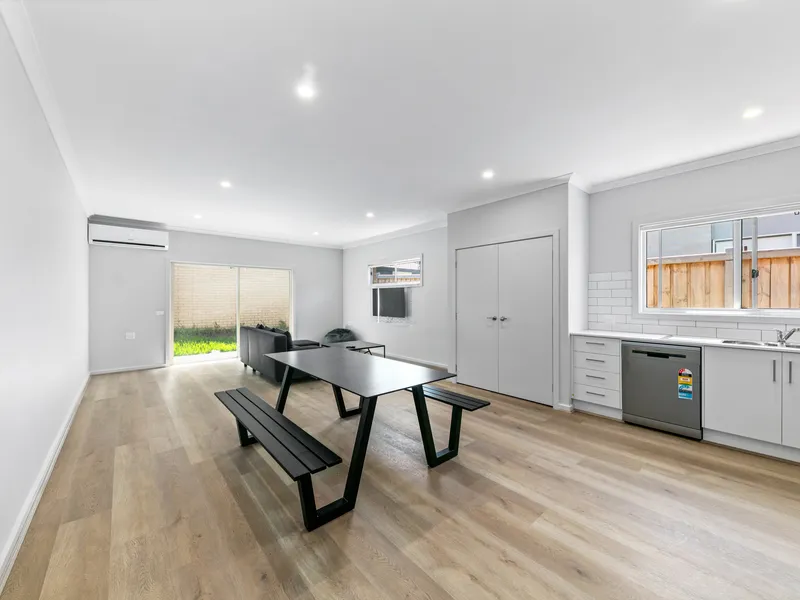 – Expansive open plan kitchen, dining and living, with a split system, this space is filled with natural light and also has a glass sliding door to the back-yard