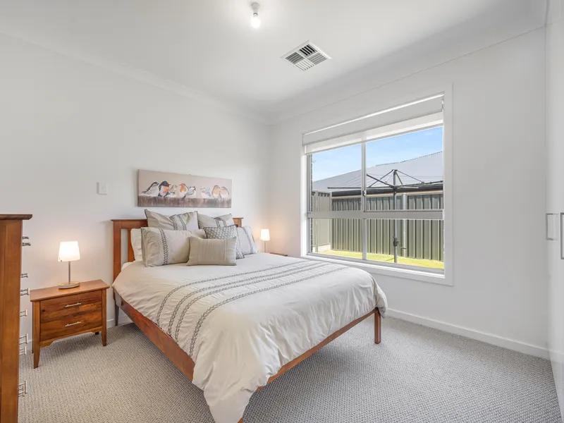 Enjoy modern comfort at 18 Stirling Court, Mount Gambier. This near new home offers spacious open-plan living, a second lounge or optional fourth bedroom, and a private master suite. Located in a quiet cul-de-sac just minutes from Mount Gambier Hospital and the CBD, it also features a large enclosed alfresco, multiple garage spaces, and quality finishes throughout.