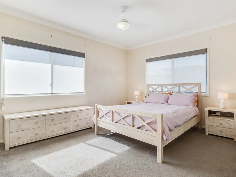 Each of the three generously sized bedrooms include built-in wardrobes and ceiling fans, while the master suite boasts a walk-in wardrobe and indulgent ensuite. The family bathroom is designed for practicality, featuring a shower and a separate bathtub. Step outside to the spacious north-facing covered entertainment area, perfect for hosting guests while overlooking the backyard.