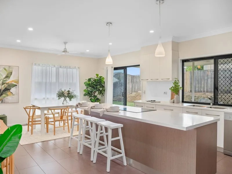 • Stunning and modern kitchen that offers ample bench and cupboard space and flows seamlessly to the living and dining areas.