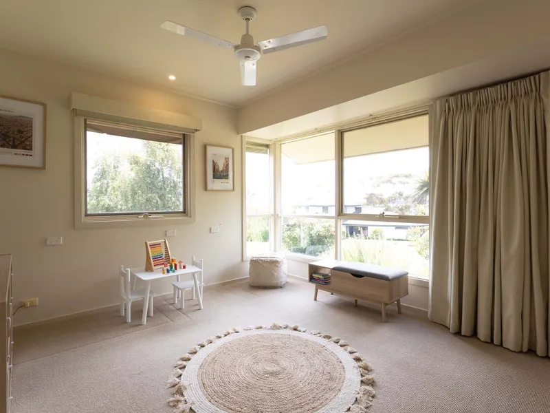 For those working from home or in need of extra space, the versatile study/fourth bedroom, featuring stunning bay views, offers a quiet sanctuary. Additional features of this exceptional home include a cozy gas log fireplace, ducted heating and vacuuming, split systems for year-round climate control, ceiling fans for added comfort, solar panels for energy efficiency, and a handy garden shed for extra storage.