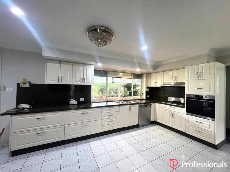• L-shaped kitchen with electric cook-top, rangehood, oven and dishwasher