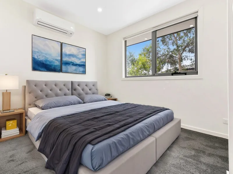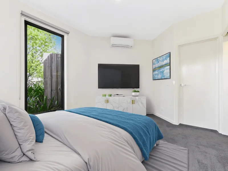 Flexibility is a hallmark of this property, with a generously sized ground-floor master bedroom complete with a private ensuite, providing convenience and privacy. Upstairs, you'll find two additional well-appointed bedrooms, each with built-in robes, along with a central bathroom designed for family functionality. Comfort is ensured year-round with split-system heating and cooling throughout. Outdoor living is catered to with a low-maintenance courtyard, while a single-car garage offers space for a large vehicle plus extra storage.