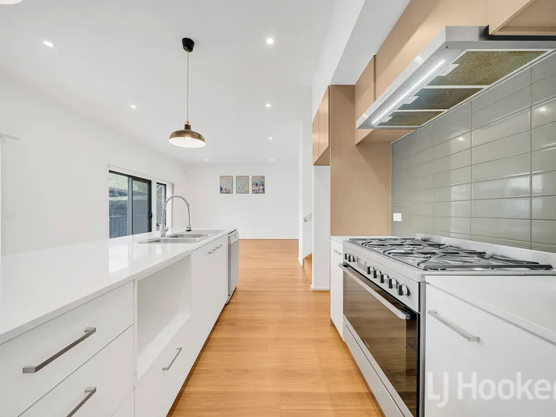 • Modern kitchen equipped with gas cooktop, oven, dishwasher and ample storage space