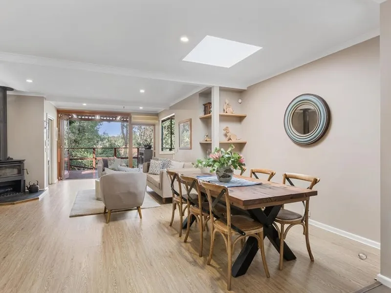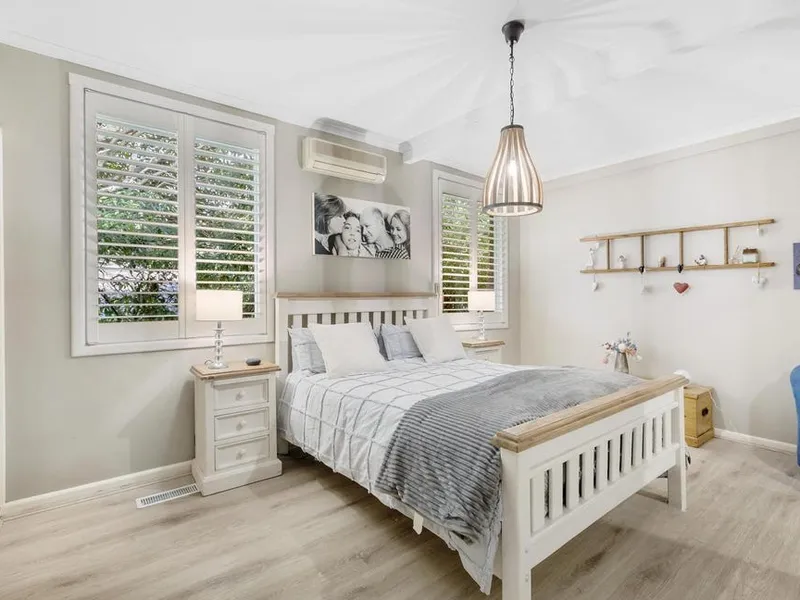 The home also includes a private parents' retreat with ensuite, generous built-in storage throughout, and a study nook ideal for remote work or homework. With established gardens that enhance the tranquil setting, this property presents the perfect blend of indoor and outdoor living.