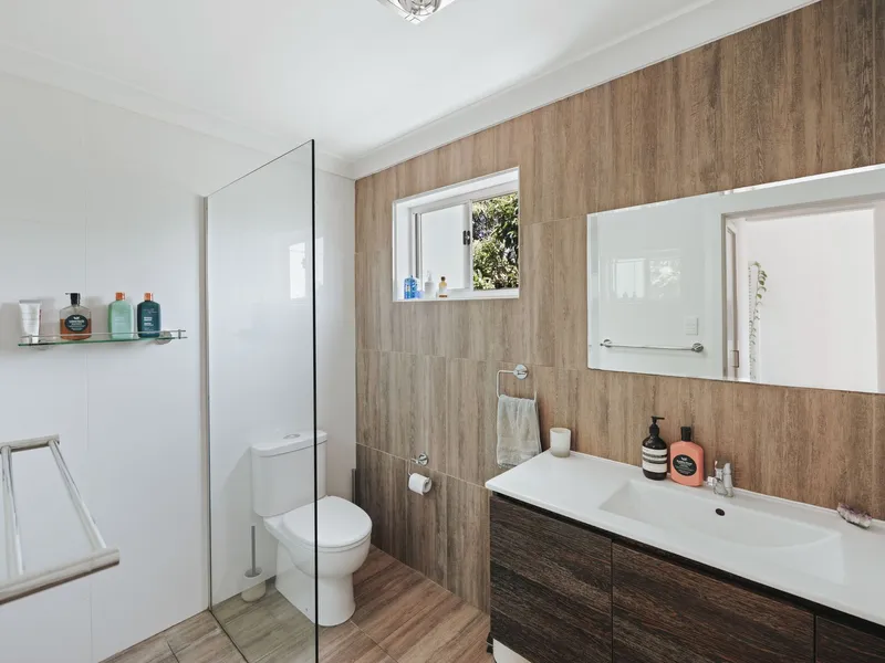 Due to the design of the property, it is not suitable for children or pets. The home shares a backyard with the front dwelling, though it truly feels like a little slice of paradise. You’ll enjoy your own private entry and a private back deck, perfect for relaxing and entertaining.