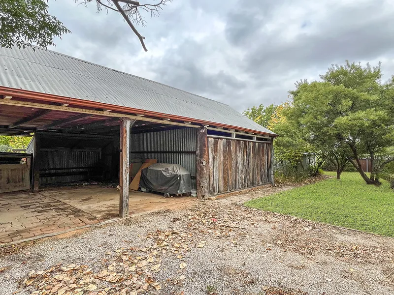 - Rustic shed offering two covered parking spaces & additional storage or workspace