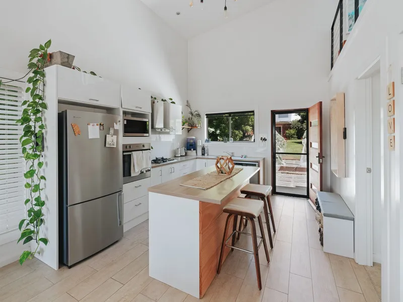 - Modern kitchen with island bench/breakfast bar, gas cooktop and ample storage