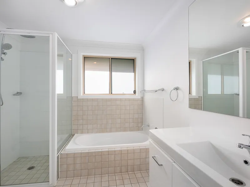 - Spacious, modern kitchen with electric cooktop, dishwasher & breakfast bar