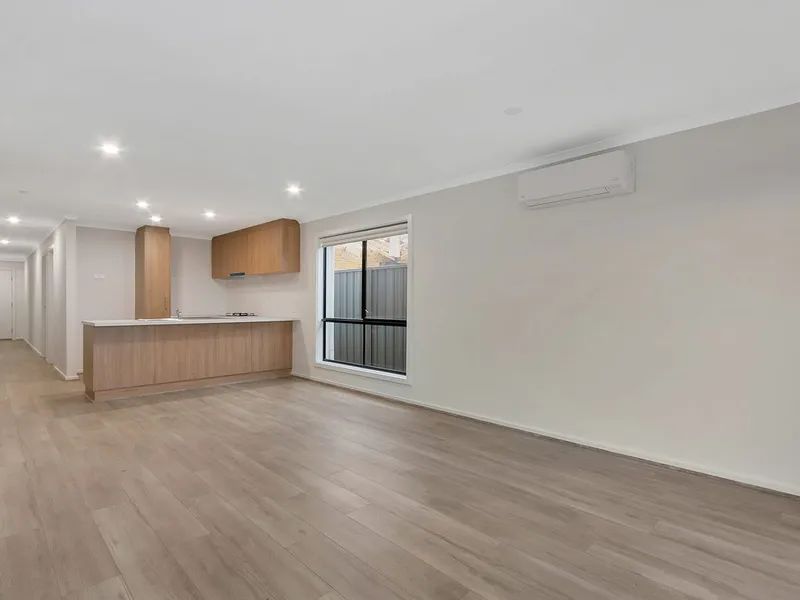 The open plan kitchen, meals, and family area forms the heart of the home, providing a bright and welcoming space for everyday living and entertaining. Reverse-cycle air conditioning keeps the home comfortable in all seasons, while easy-care floating floors and large windows allow plenty of natural light.