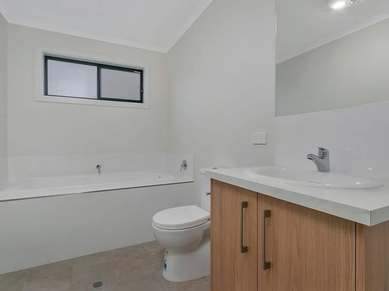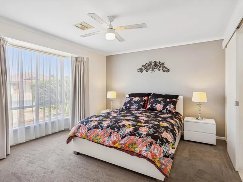 Designed with families in mind, the home offers four generous bedrooms. The master bedroom features reverse-cycle air conditioning, a walk-in robe, and a private his and hers ensuite. Bedrooms 2–4 all include built-in robes and ceiling fans, ensuring comfort throughout the year.