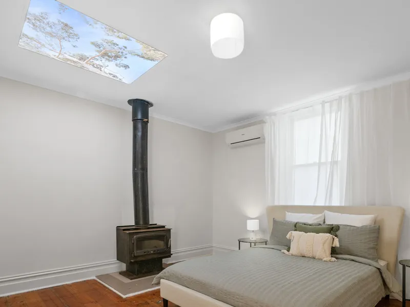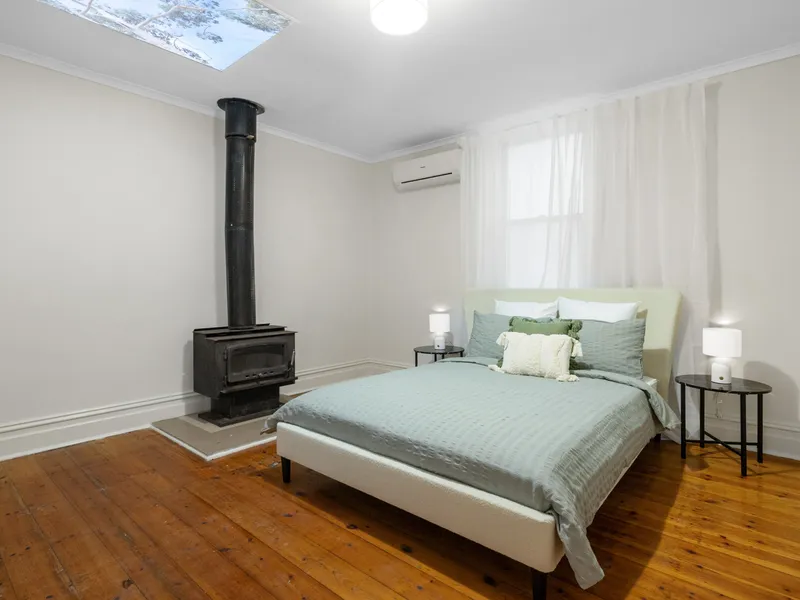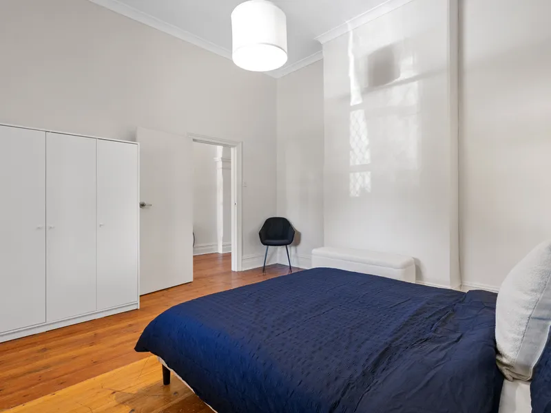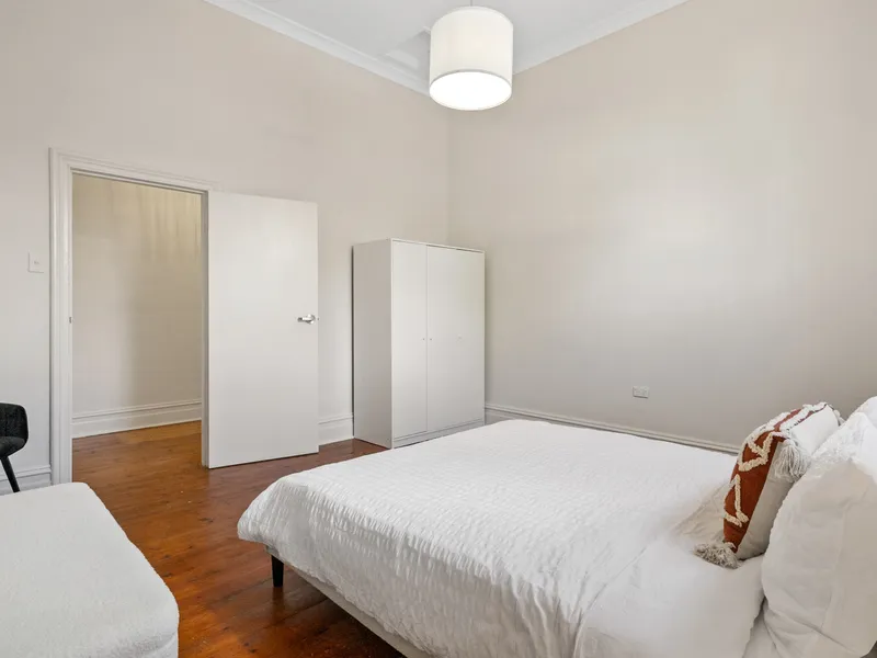 - The residence offers a charming atmosphere with its high ceilings and polished floorboards