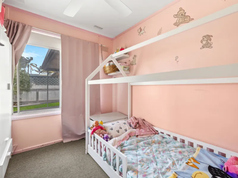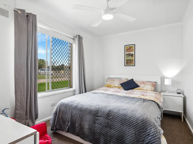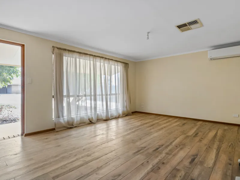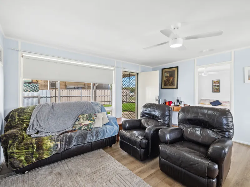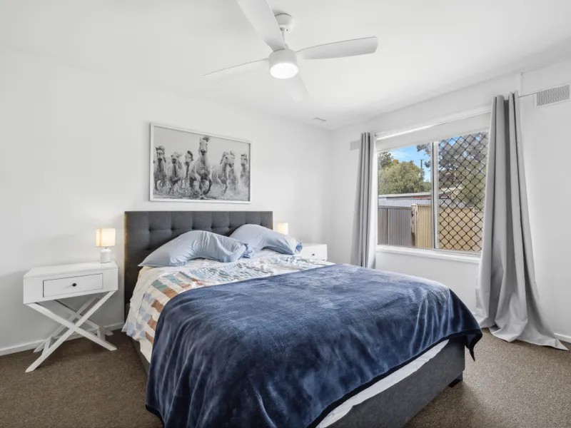 The property features three generously sized bedrooms, each fitted with ceiling fans to help keep the home cool during warmer months. Split system air conditioning further supports year-round comfort, while the layout is well-suited to a range of living needs.