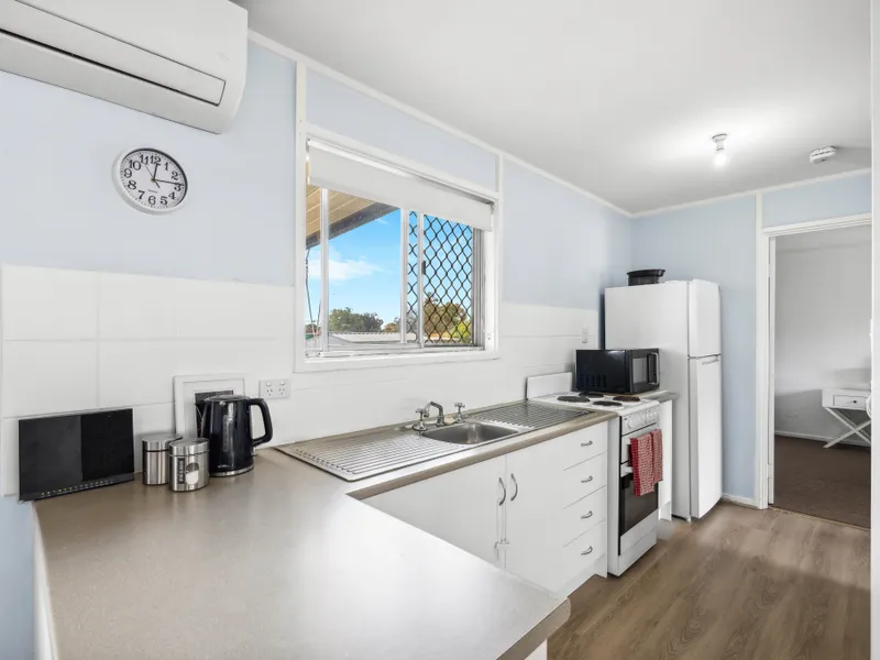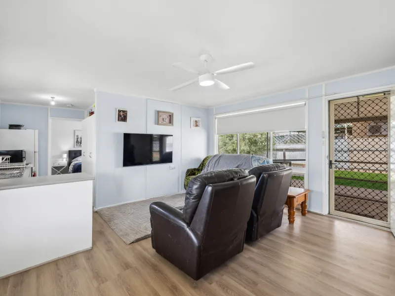 Step inside, and you are welcomed into a bright and inviting open-plan living area, ideal for everyday living. The kitchen is thoughtfully laid out with ample cabinetry, making it easy to keep cooking essentials organised, while a breakfast bar offers a practical space for casual meals or a morning coffee. The home has been recently renovated, enhancing its overall comfort and presentation.