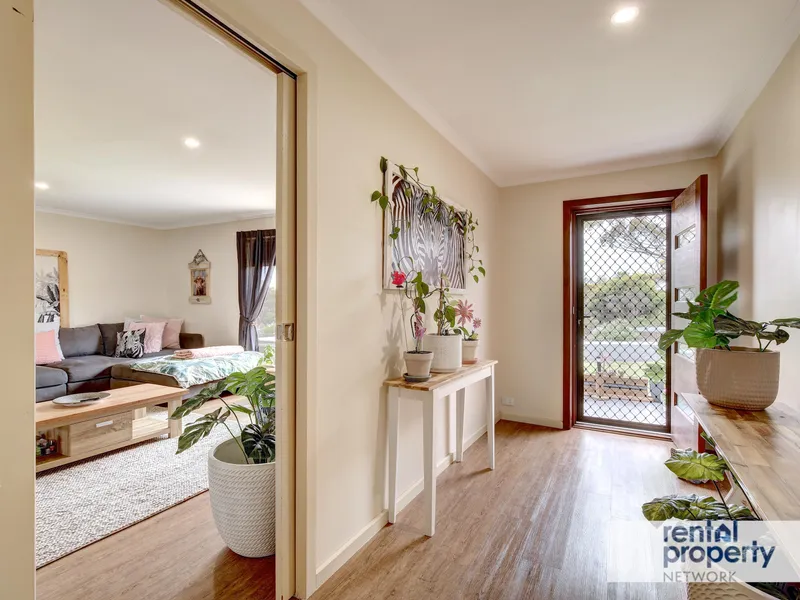There are three generous bedrooms, including a main bedroom with built-in robes. The recently renovated bathroom features a separate bath and shower, while the second toilet and well-appointed laundry add everyday practicality.