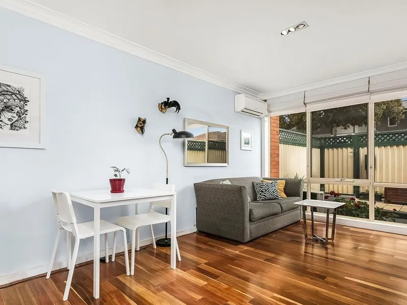 This rare loft-style apartment has its own street frontage (facing First Avenue). Boasting natural light flows from a west-facing courtyard, indoors to open plan living/dining and a smartly updated modern kitchen, whilst a good-sized bedroom with mirrored built-in robe, crisp white bathroom, ample storage, split system heating & air conditioning and carport. Communal laundry facilities.