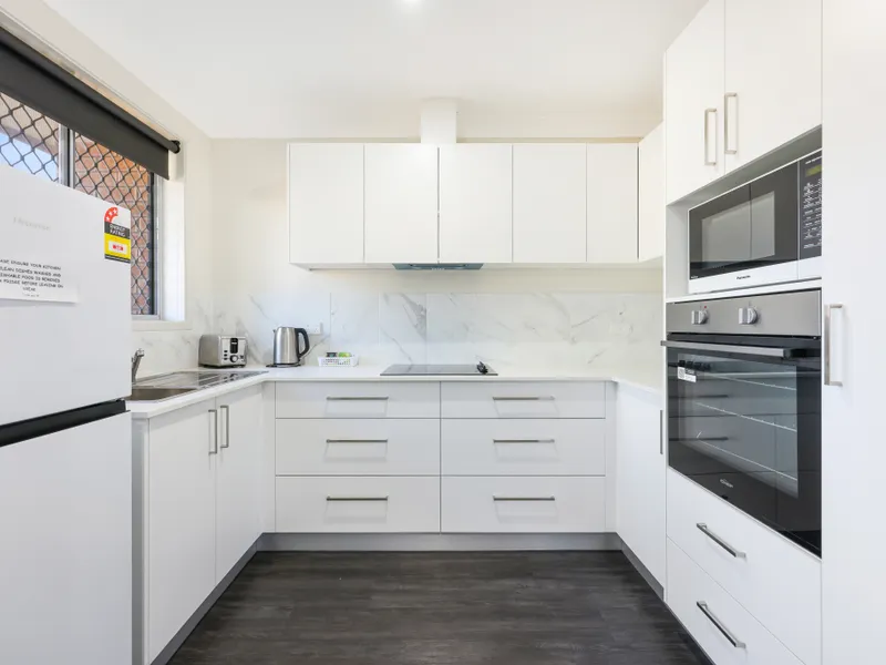 This two bedroom flat has been recently painted and includes remote entry lock up single garage, updated kitchen, A/C and ceiling fan in main bedroom, polished floorboards throughout.