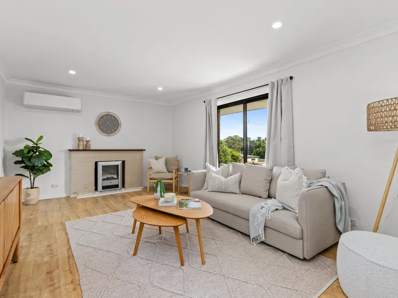 Featuring sought-after ducted air conditioning throughout, the home's cosy living room is an inviting space to relax, complete with modern decor and comfortable furnishings. The heart of the home boasts a well-equipped kitchen with quality appliances, ample storage, and a convenient dining area, making meal preparation a joy.