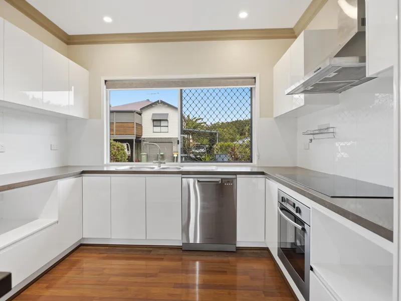 • Stylish modern kitchen with stone bench tops, ceramic cooktop, stainless steel oven and dishwasher, plus great storage
