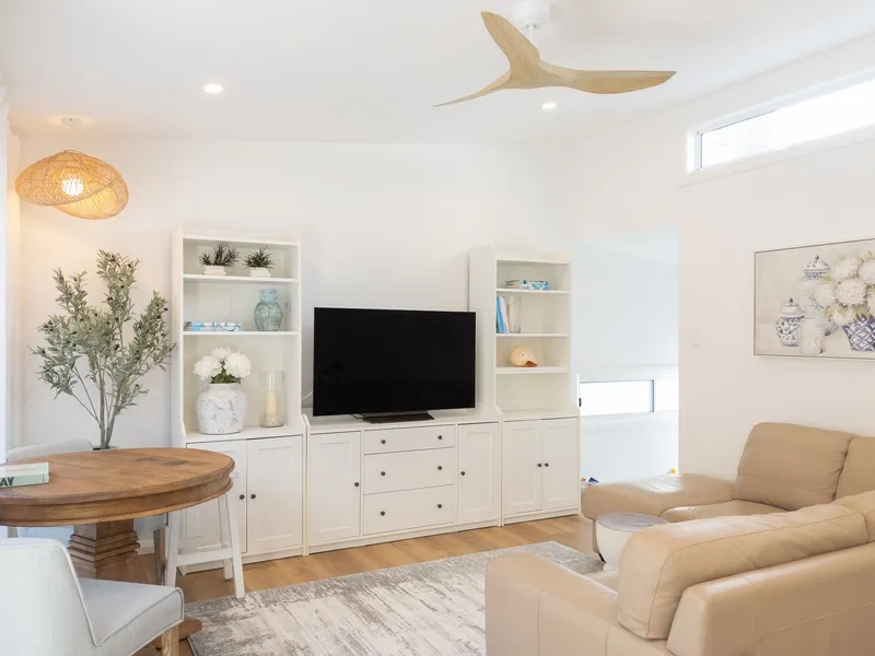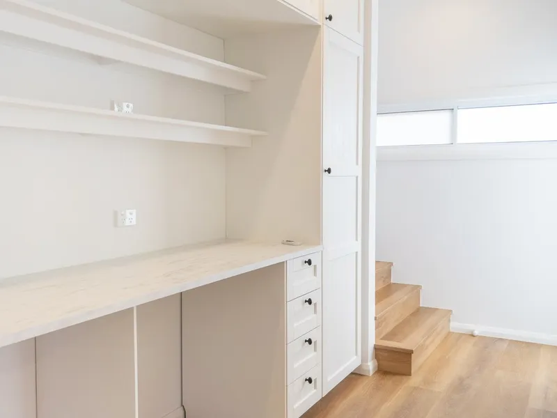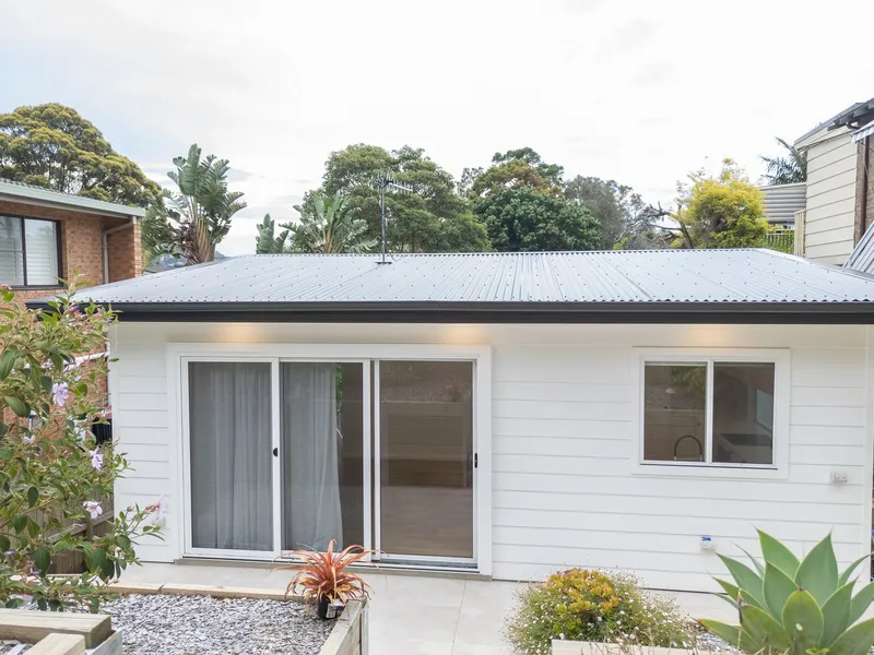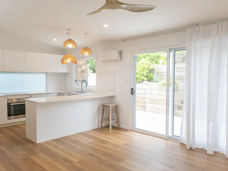 This beautiful new free-standing cottage enjoys a private & quiet location across the road from the lake, walking distance to the beach, shops, cafe's, schools & transport. The open plan kitchen lounge & dining areas open to a large terrace & tiered garden. There are 2 bedrooms and a well-appointed study nook with storage.