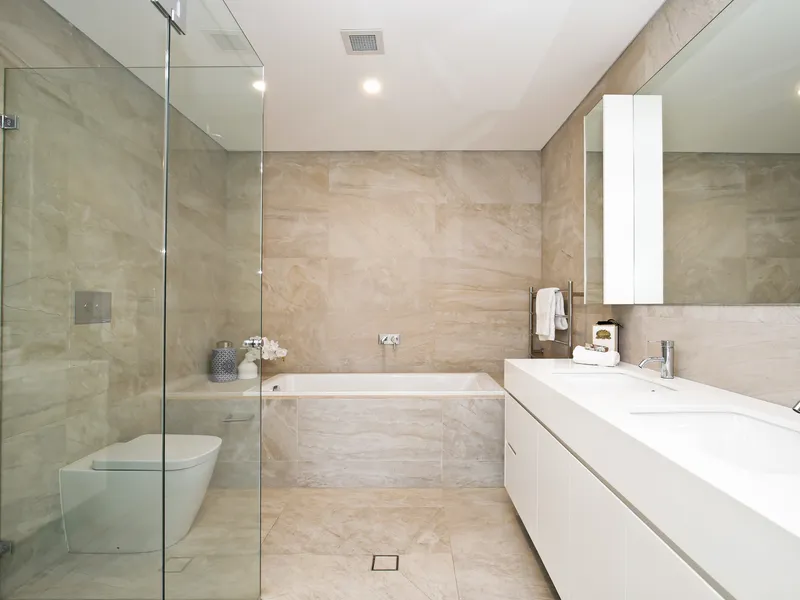 - Luxurious travertine bathrooms with underfloor heating and premium fixtures