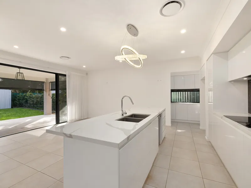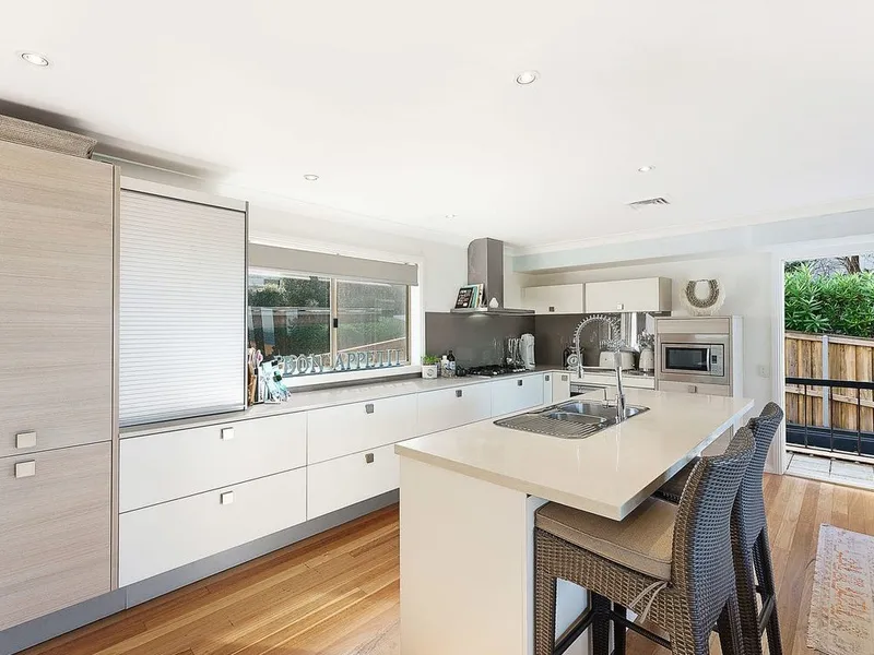 - High-end kitchen with Miele appliances, Caesarstone benchtops, and ample