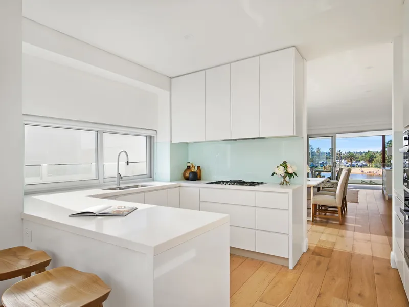Set in a prime location just steps from the beach, this luxurious three-bedroom lakefront residence offers unrivalled craftsmanship, stunning views, and exceptional privacy. Designed to embrace its unique position, this custom-built apartment captures breathtaking vistas of Narrabeen Lake and the beach beyond.