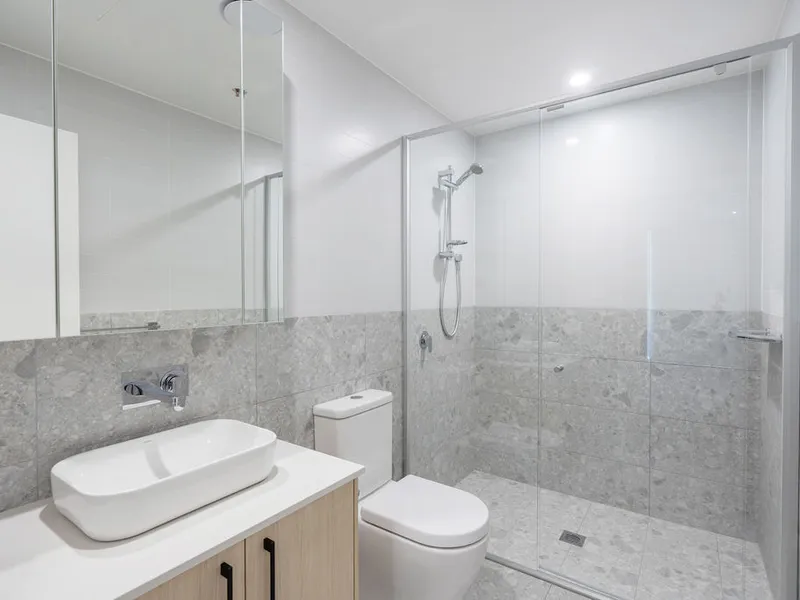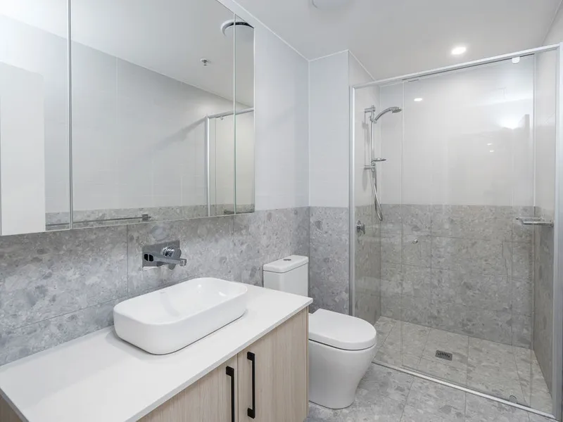 The well sized master bedroom includes a walk in wardrobe and spacious ensuite bathroom, is fitted with floor to ceiling windows. Bedroom 2 also includes a built in robe.