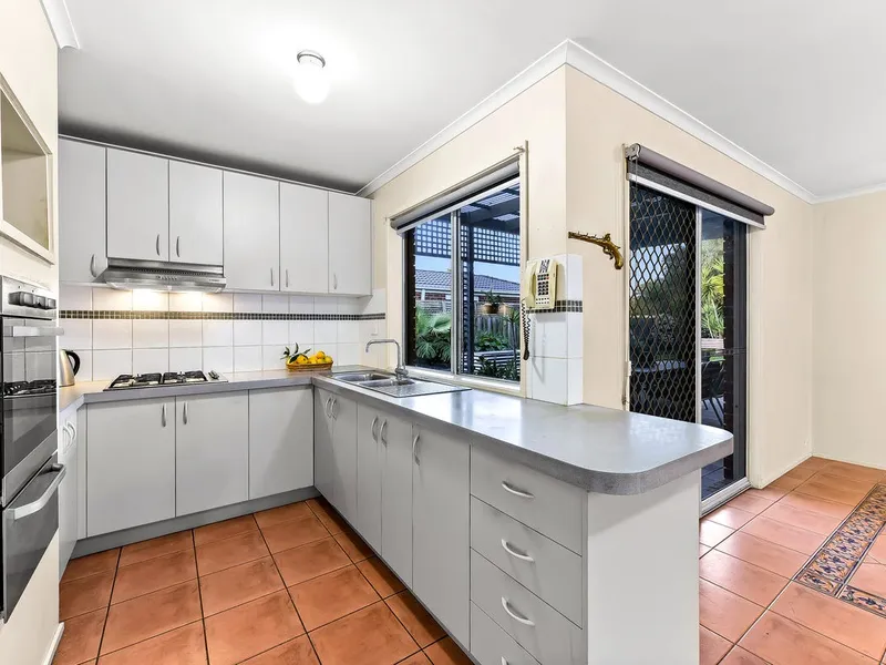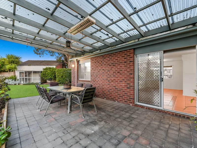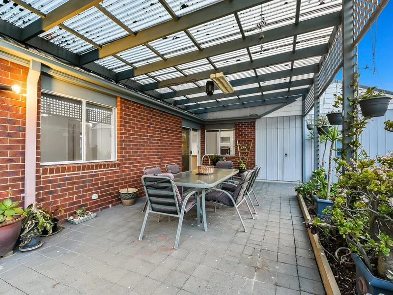 Outside, enjoy the generous paved veranda (approx. 8m x 4m), ideal for alfresco dining or relaxing while overlooking the low-maintenance backyard with mature citrus trees. The property also includes access to a double garage and additional outdoor storage.