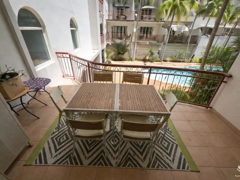 The airconditioned unit has been well maintained with open plan living and covered balcony overlooking the central pool and courtyard.