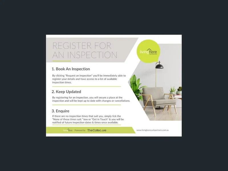 To book a time to inspect, simply click on the 'Book an Inspection Time' button. By registering, you'll be instantly informed of any updates, changes, or cancellations for your appointment.