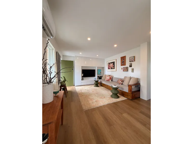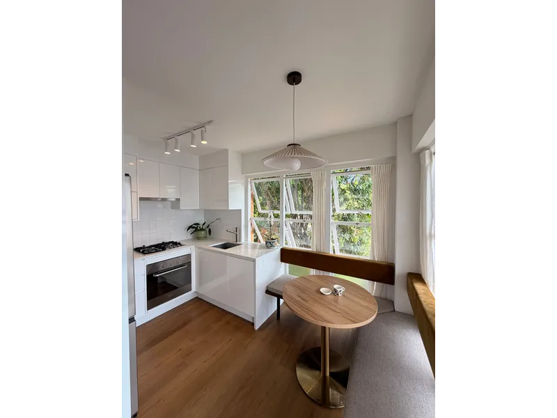 Bright top-floor unit in a solid 70s brick building with a lovely north-east aspect. Fully renovated and partly furnished with air-conditioning in both bedrooms and the living area.