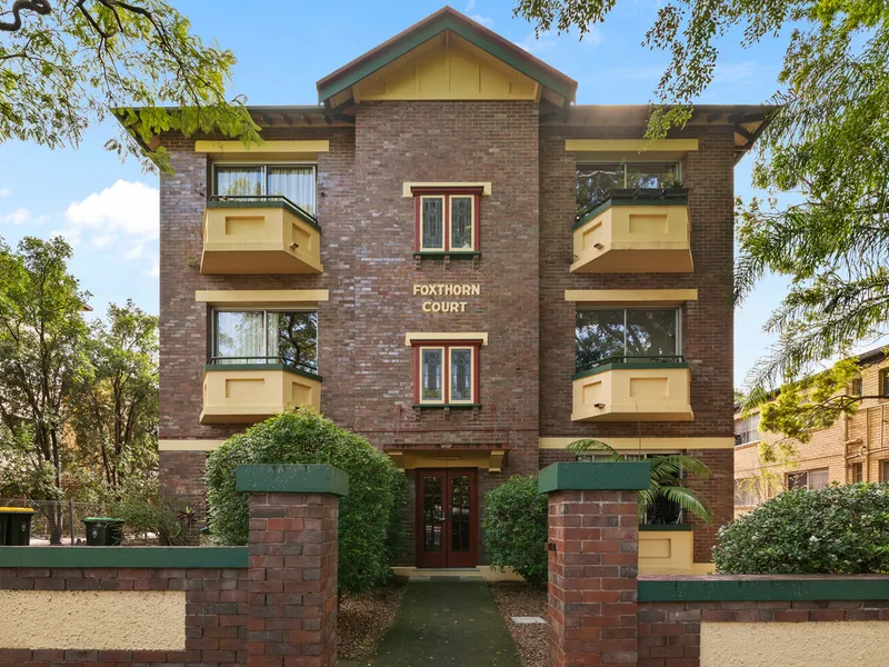 Set within the iconic Foxthorn Court, this charming Art Deco apartment combines timeless character with a bright, breezy top-floor position in the heart of New Farm.