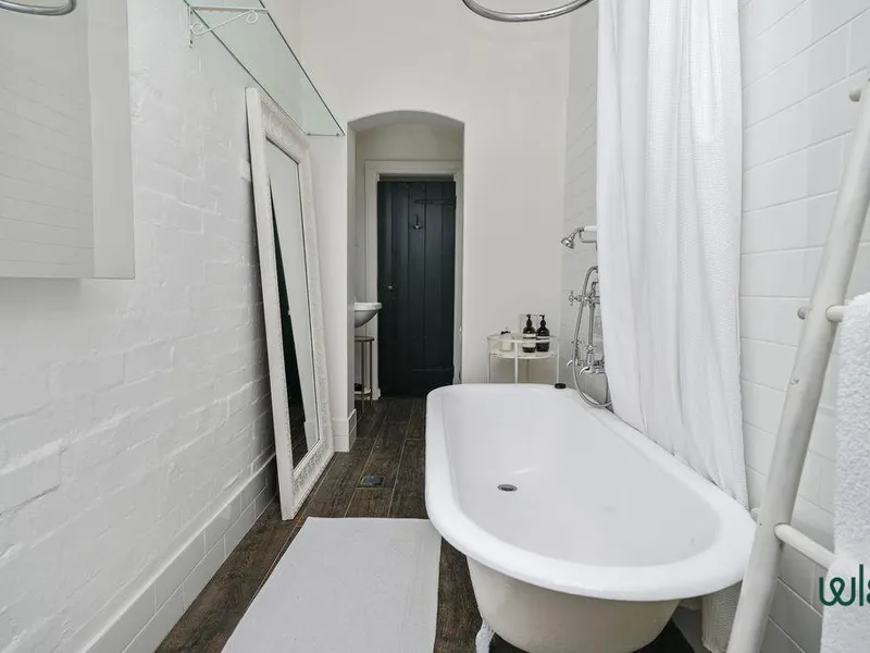 Two stylish bathrooms serve the home, each designed with quality finishes and timeless appeal, including a luxurious freestanding bathtub perfect for unwinding at the end of the day.