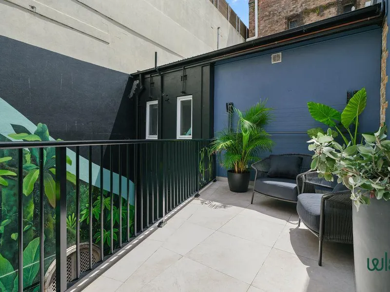 A private balcony off the living area offers an inviting outdoor space to relax while soaking in the unique energy of Newcastle’s historic city centre.