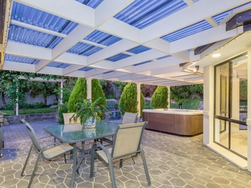 The flexible floorplan includes four generously sized bedrooms with built-in robes, ample storage, an oversized laundry, and ducted vacuum. Three separate living areas—formal, casual, and a rumpus or media room—provide space for the whole family. Outdoors, a covered alfresco area with spa overlooks the stunning gardens, which are supported by an automatic irrigation system.