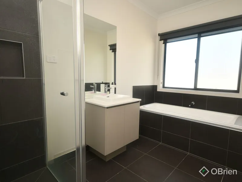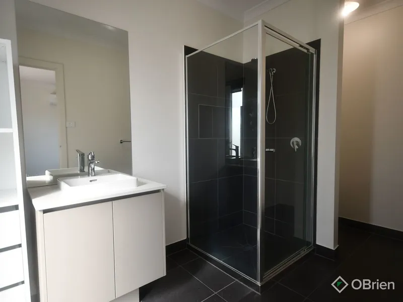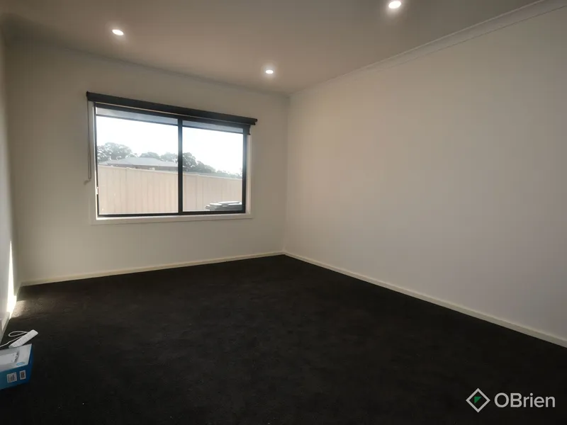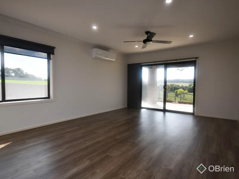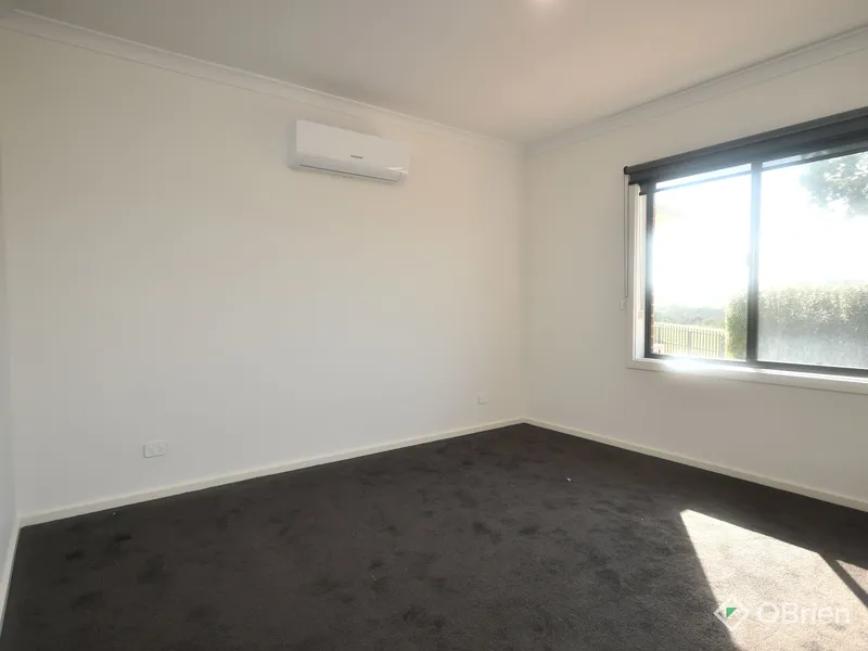 Designed with growing families in mind, the home features four generous bedrooms. The master suite is privately positioned at the rear of the home, complete with a spacious walk-in robe, modern ensuite and split-system heating and cooling for year-round comfort. The remaining three bedrooms include built-in robes and are connected by a versatile nook-perfect for a kids' retreat or open study-while being serviced by a central bathroom and separate toilet.