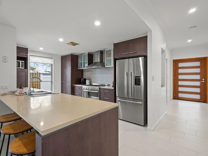 - Modern kitchen complete with a walk in pantry, a large plumbed fridge space and dishwasher included