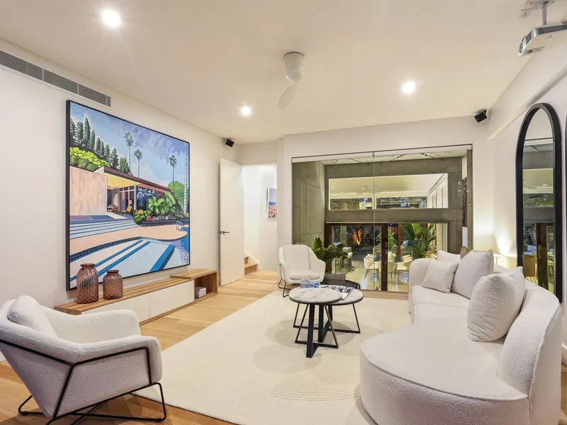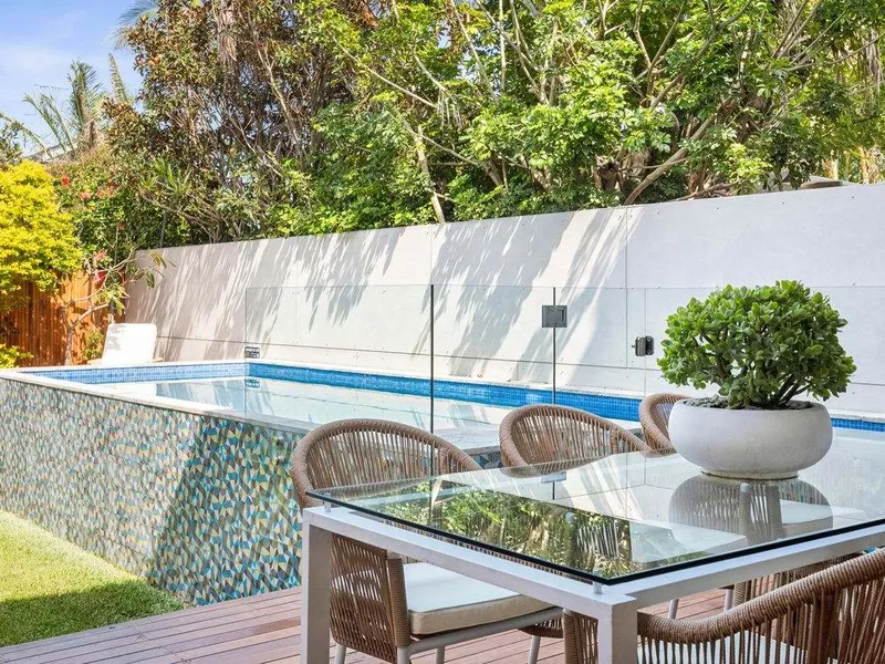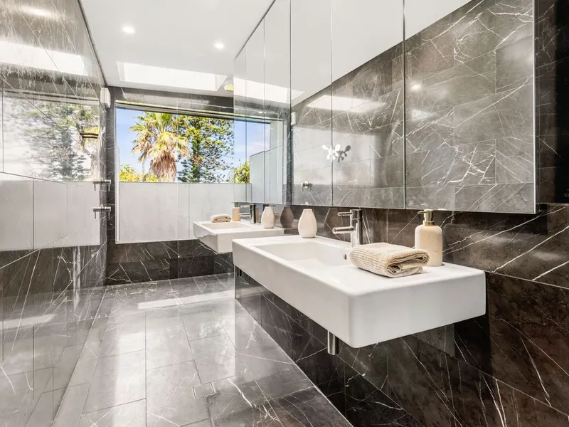 Located in North Bondi's 'Golden Triangle', this striking architectural beach house brings laidback holiday vibes with a chic coastal aesthetic that blends high-end luxury with superb functionality. Showcasing a robust palette of concrete, marble and timber and walls of glass framing a pool as the centrepiece, it reveals meticulously crafted interiors with double-height ceilings achieving an uplifting sense of space and seamless indoor/outdoor transitions designed for effortless living and entertaining. A dream marble island kitchen with premium European appliances serves as the social heart of the home, while there are multiple living areas and an array of sun bathed alfresco spaces inviting relaxation. With two off-street parking spaces, this exceptional home is placed just 500 metres to Bondi's sand and surf, village shops, eateries and buses.
