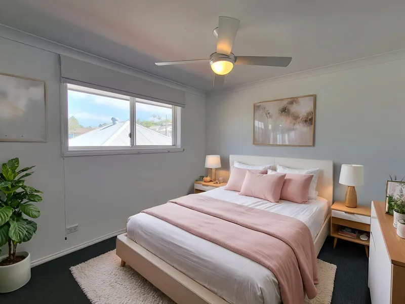 -Three generous bedrooms with built-in wardrobes and ceiling fans