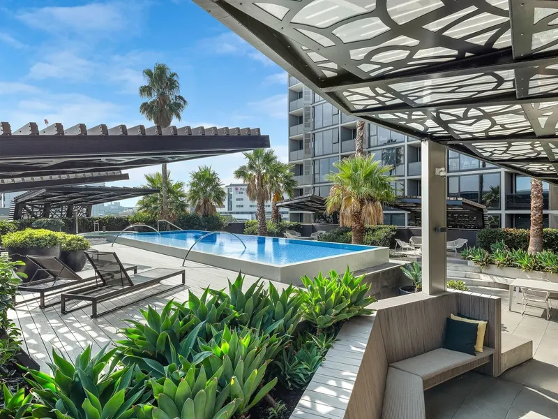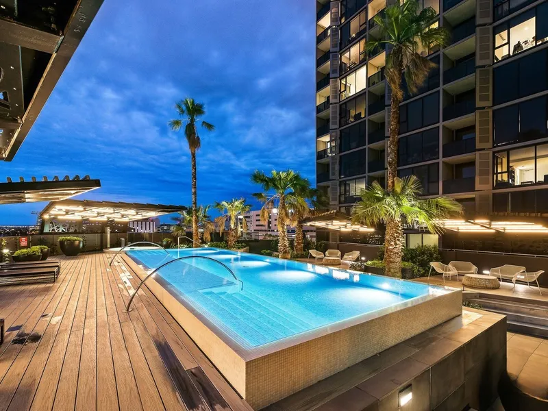 BBQ facilities and fireplace, sauna room, garden deck, and gymnasium – everything you would enjoy. Only minutes away from Errol Street with its array of restaurants, cafes, and bars, Queen Victoria Market, CBD, and public transport, located in a prime North Melbourne location.